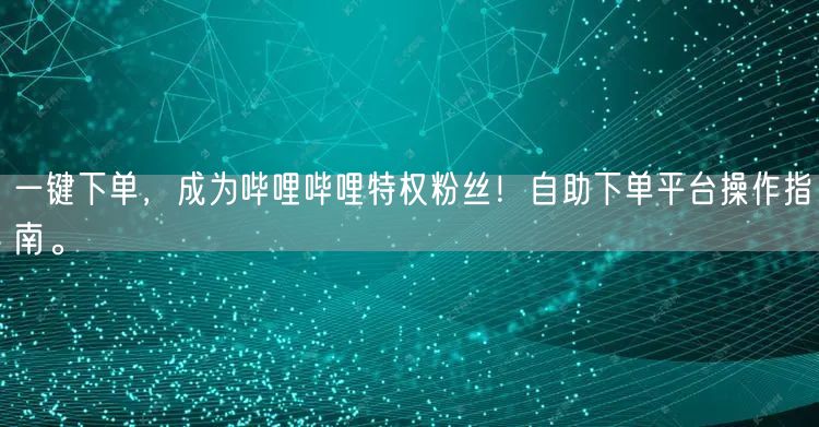 一键下单,成为哔哩哔哩特权粉丝!自助下单平台操作指南。