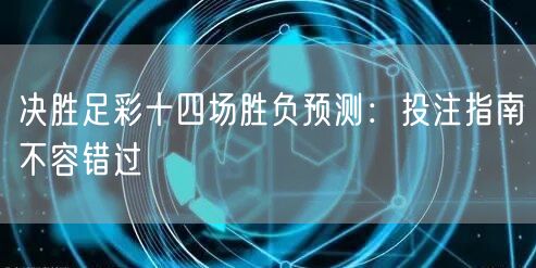 在足彩的世界里,每一场比赛都充满了未知与变数。然而,对于热爱足彩的玩家们来说,通过深入分析、研究球队动态和球员状态,我们可以尝试预测比赛的胜负走向。在这篇文章中,我们将为你提供决胜足彩十四场胜负的预测及重要的投注指南。