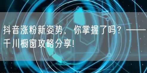 千川橱窗作为抖音涨粉的新姿势,为创作者和商家提供了一个全新的涨粉途径。通过精选商品、制作创意视频、巧妙植入商品信息、互动营销和数据分析等策略的运用,你可以轻松提升抖音粉丝量,实现流量大爆发。未来,随着抖音平台的不断发展和完善,千川橱窗的功能也将更加丰富和强大。我们期待更多创作者和商家能够掌握这一涨粉新姿势,共同推动抖音生态的繁荣发展!