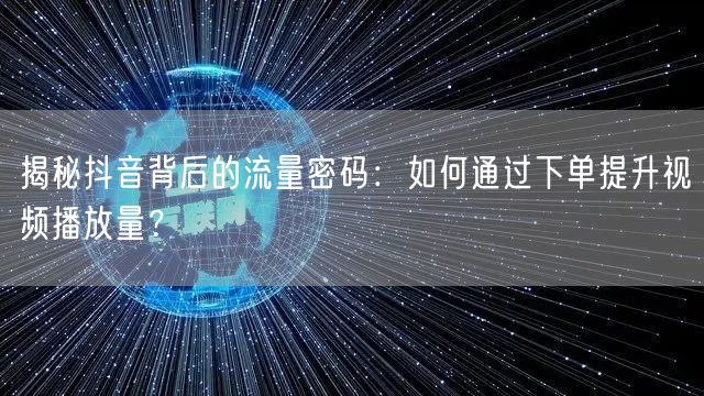揭秘抖音背后的流量密码:如何通过下单提升视频播放量?
