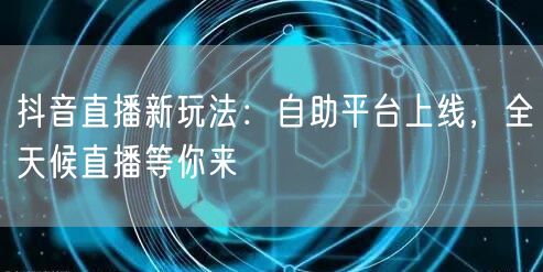 抖音直播新玩法:自助平台上线,全天候直播等你来