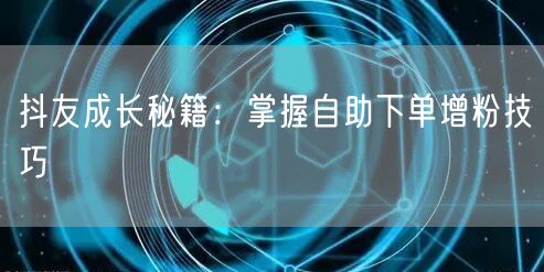 在抖音这个充满机遇的社交媒体平台,如何快速吸引粉丝关注,成为网红达人?本文将为你揭示抖友成长秘籍,教你掌握自助下单增粉技巧,助你在抖音平台上脱颖而出。