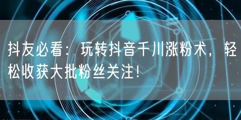 抖友必看:玩转抖音千川涨粉术,轻松收获大批粉丝关注!