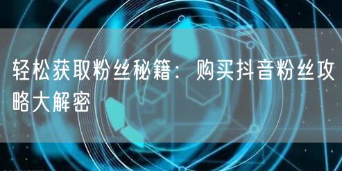 轻松获取粉丝秘籍:购买抖音粉丝攻略大解密