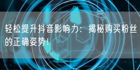 轻松提升抖音影响力:揭秘购买粉丝的正确姿势!