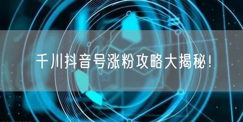 千川抖音号涨粉攻略大揭秘!