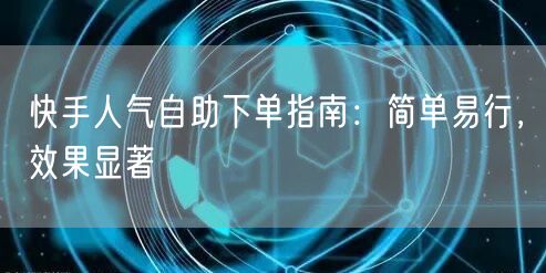 快手人气自助下单指南:简单易行,效果显著