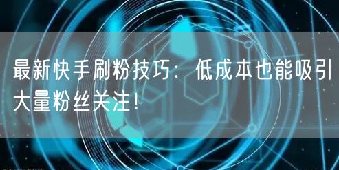 最新快手刷粉技巧:低成本也能吸引大量粉丝关注!
