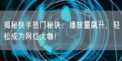 揭秘快手热门秘诀:播放量飙升,轻松成为网红大咖!