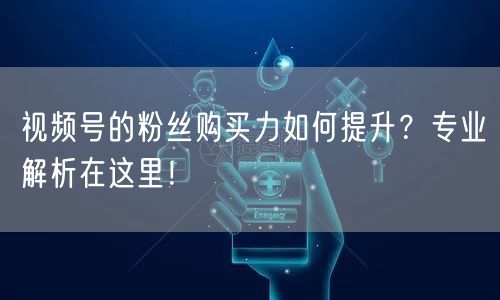 视频号的粉丝购买力如何提升?专业解析在这里!
