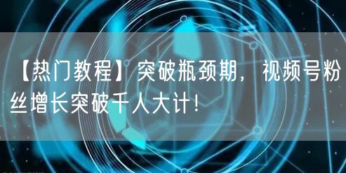 【热门教程】突破瓶颈期,视频号粉丝增长突破千人大计!