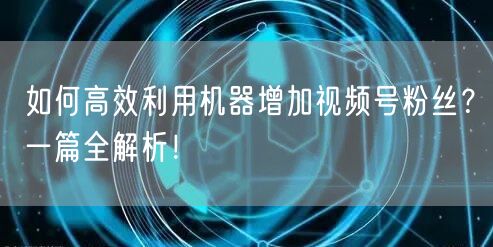 如何高效利用机器增加视频号粉丝?一篇全解析!