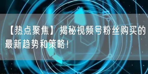 【热点聚焦】揭秘视频号粉丝购买的最新趋势和策略!