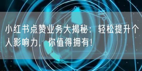 通过本文的揭秘和介绍,相信你已经对小红书点赞业务有了更深入的了解。合理运用点赞业务,结合优质内容,你也能在小红书上轻松提升个人影响力。