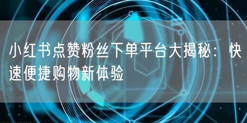 小红书点赞粉丝下单平台大揭秘:快速便捷购物新体验